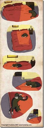 J’ai trouvé cette petite bd et cette vidéo qui, j’en suis sure, vous feront sourire, vous tous qui avez un chat à la maison …